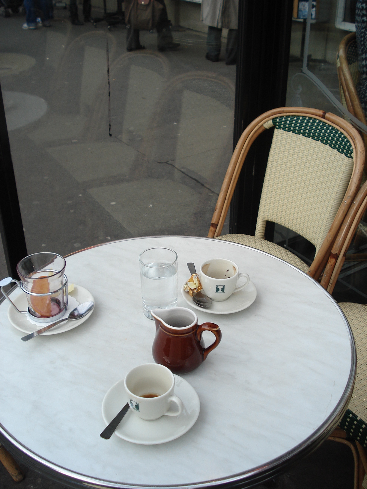 Kiinnitin kuvissa erityisesti huomiota siihen, että matkalla ovat olleet hyvinkin sivityneet ihmiset: kukaan ei ole jättänyt lusikkaansa kahvaikuppiin vaan laittanut oikeaoppisesti aluslautaselle!