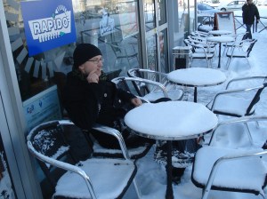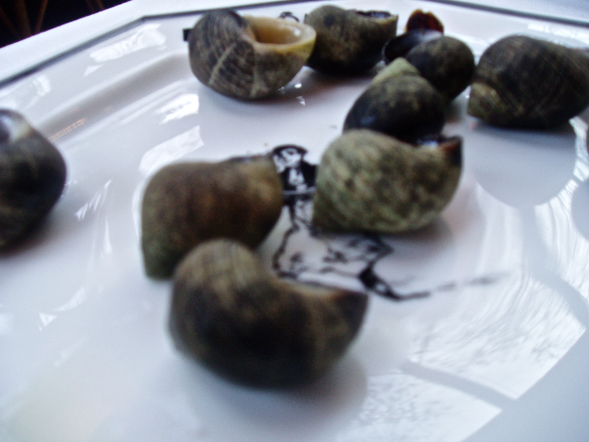 La Dôme oli yksi Sartren vakioravintoloista. Alkupaloiksi meille tuodaan kotiloita. Yhteen kotiloon on joutunut pari punaista marjan näköistä. Pippureita? Kaivan kotilon sisällön ulos kuorestaan, ja siinä se on. Täältä se on peräisin, juuri tästä ravintolasta!