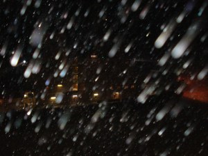 Menomatkalla oli kylmää ja lumista, ja laiva pysähtyi jo pati tuntia Helsingistä lähdettyään. Väylä oli ilmeisesti vähän tukossa, mutta kohta paikalle tulikin jäänmurtaja Sisu tietä auraamaan. Hieno kone!