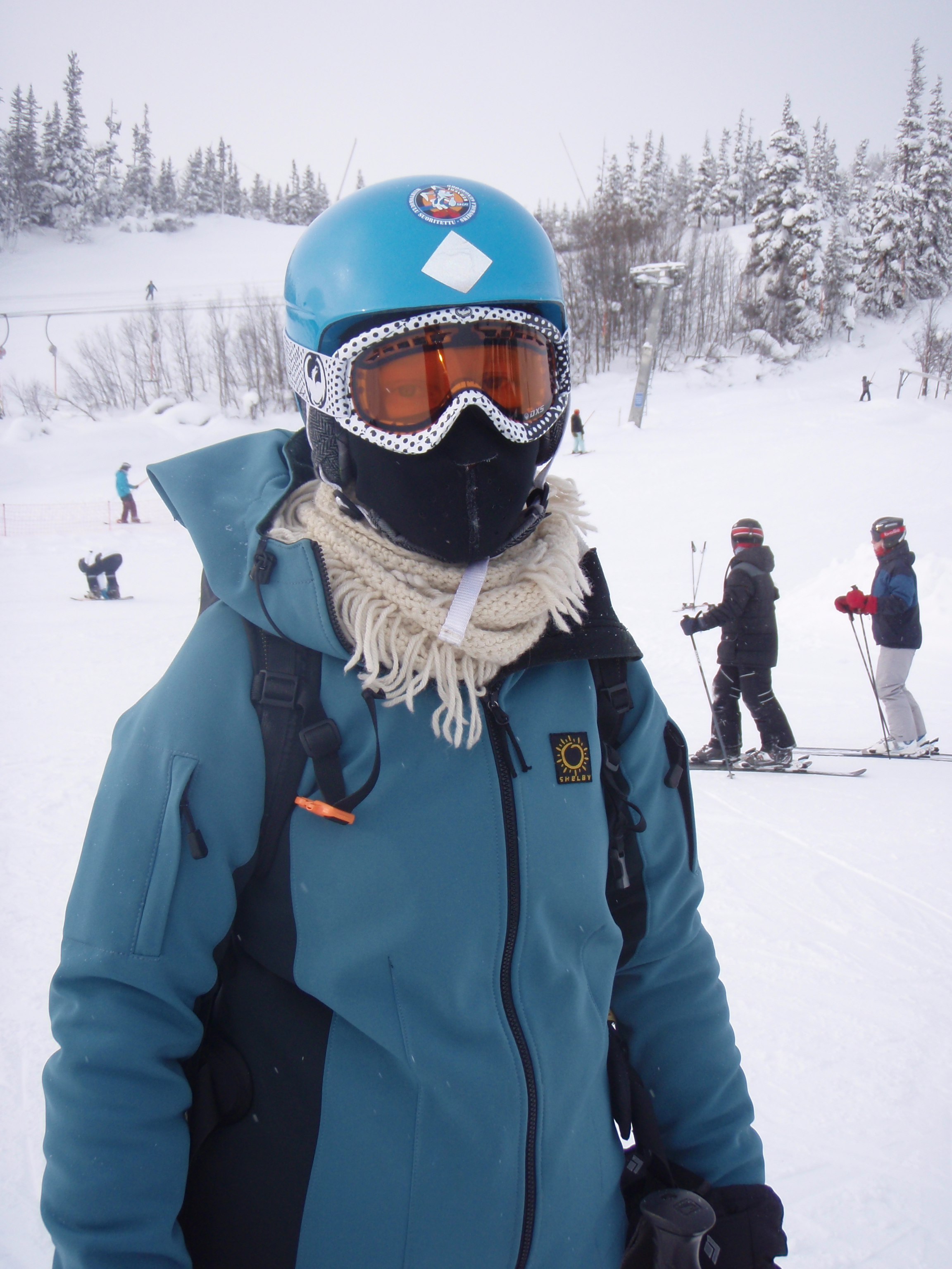Sunnuntaiksi säätiedotus lupaa sairaan kylmää mutta seuraaviksi päiviksi leudompaa. Suski ja minä päätämme pitää heti aikatauluihin budjetoimamme laskupäivän. Annamari ja Elisa eivät sen sijaan palelemista pelkää vaan kiipeävät Bølgenin. Kaikilla on kivaa! Tuota Bølgeniä minäkin voin viimevuotisten muistojeni perusteella suositella kaikille, jotka haluavat hienoja jääkokemuksia suht’helpossa maastossa.