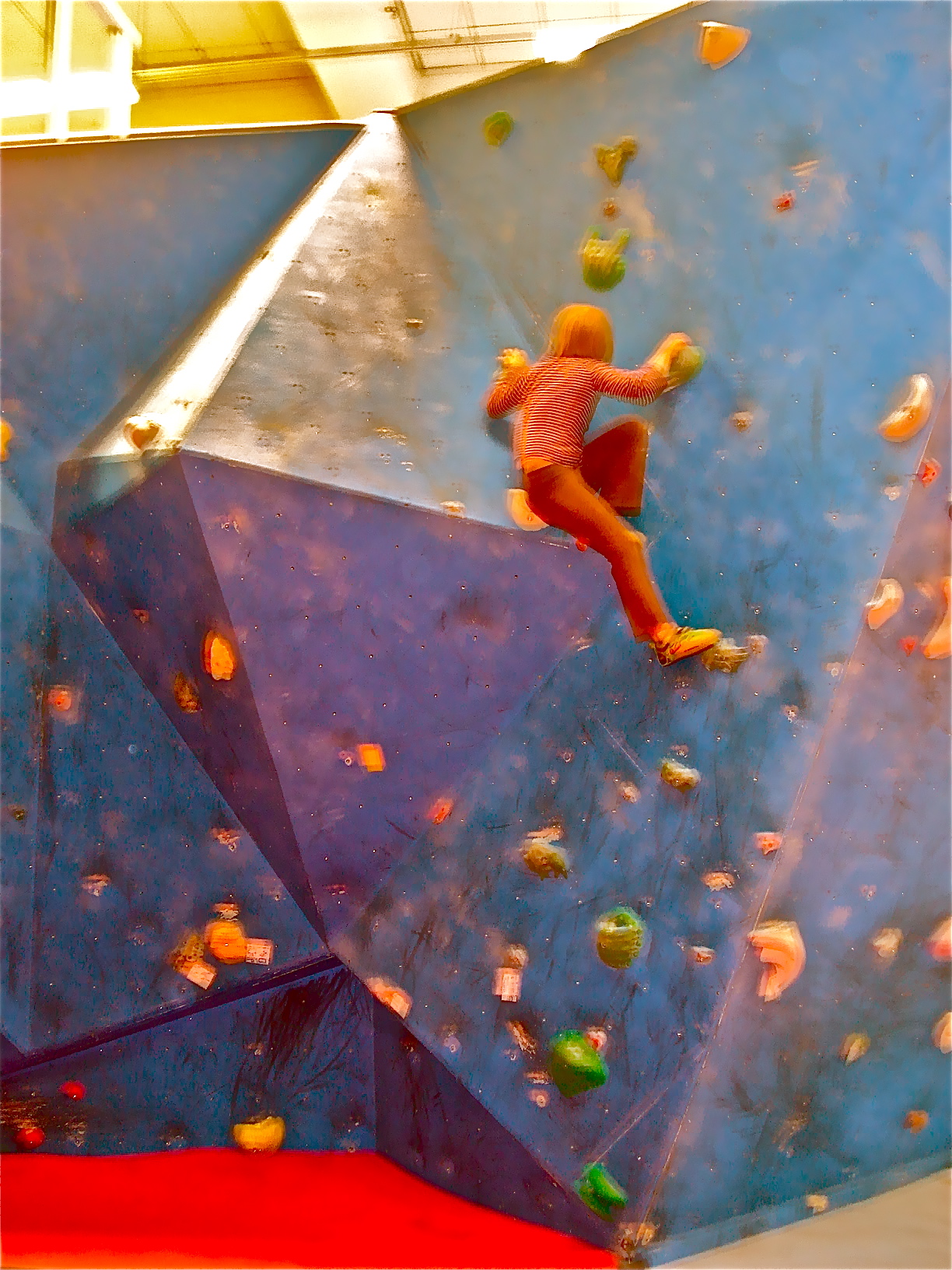 Sisäkiipeilykin on hyvää ja psykedeelistä treeniä muttei erityisesti vaikuta onnellisuuteen. Sen sijaan se korreloi onnettomuuden kanssa, sillä se liittyy pahoihin asioihin kuten huonoon säähän tai liian vähään vapaaseen aikaan. Kuvassa tyttäreni.