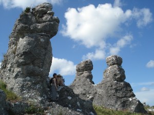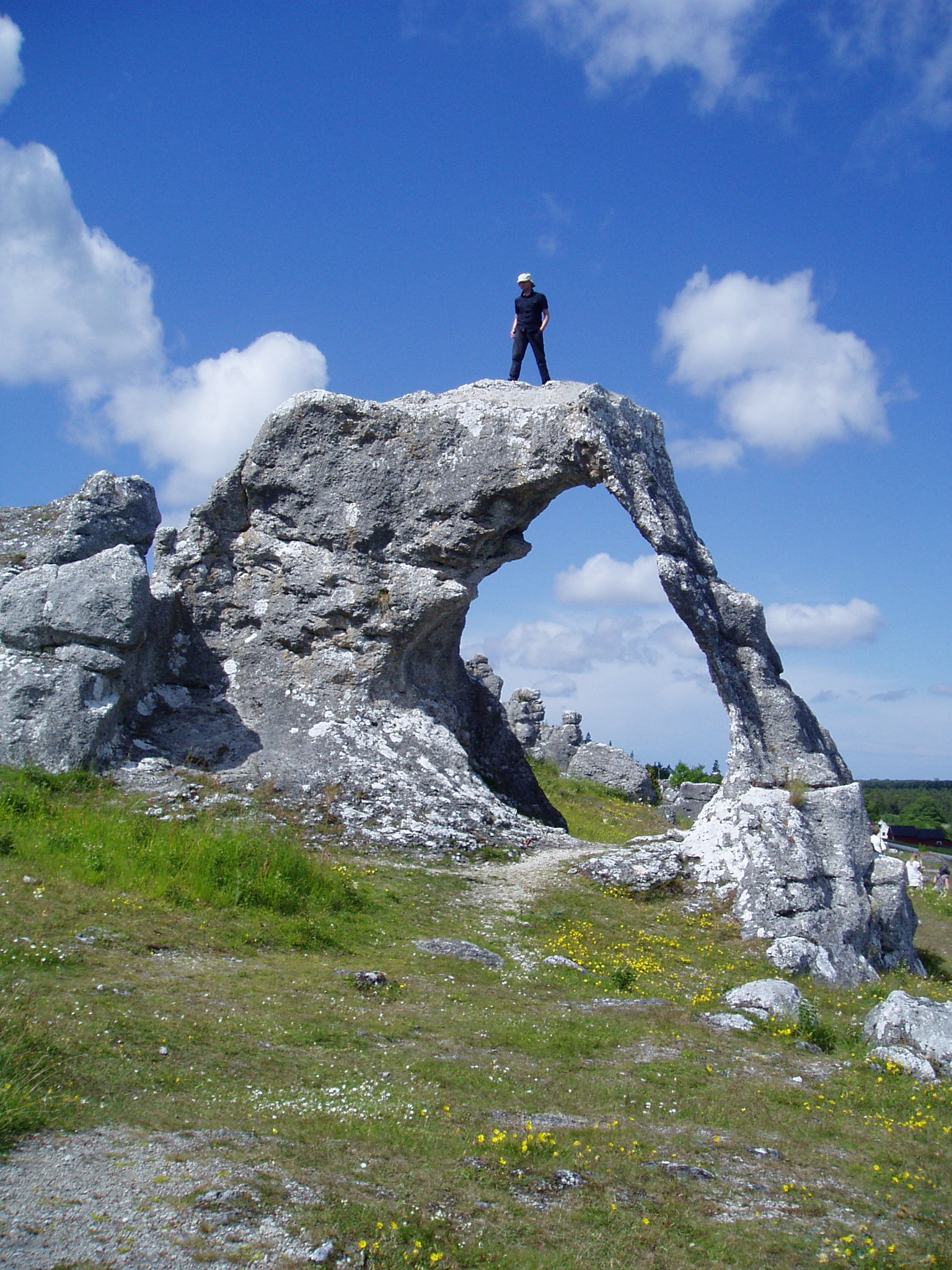 Ilmaston ja kulttuurin lisäksi Ruotsilla on geologiaa. Ruotsalaisilla on vuoria. Ja niillä on Gotlanti. Saari on entinen päiväntasaajan tienoolla kehittynyt koralliriutta, eli sen kamara koostuu lähinnä kuolleista ötököistä. Kuvassa ruotsalaista peruskalliota (klikkaa isommaksi):