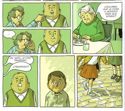 Paco Rocan Ryppyjä on hieno sarjakuva Emiliosta, vanhainkotiin sijoitetusta alzheimer-potilaasta, dementikkojen välisistä ihmissuhteista, iloista ja etenkin toivottomuudesta, joka syntyy tulevaisuuden ja menneisyyden katoamisesta. Muistin katoaminen on viime kädessä ajan katoamista, ja elämän merkitys on – luullakseni – täysin kiinni ajassa. Aiheesta huolimatta sarjakuvasta ei tule paha mieli, sillä Roca käsittelee aihettaan ilmavalla joskin melankolisella keveydellä ja ymmärtävällä huumorilla.