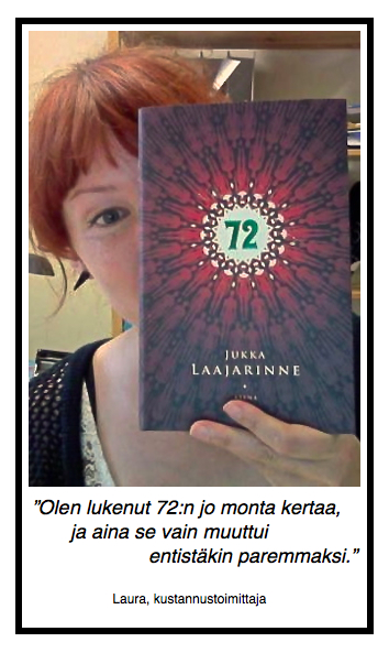 Pakkoliike huomiotaloudessa ”Muista hengittää. Älä ajattele, miten sirpaleet leikkaavat lihaa: naisia, lapsia, miehiä. Keskity vain siihen, mitä olet tekemässä.” 72 on ravisteleva romaani ulkopuolisuudesta, fanaattisuudesta ja ennakkoluuloista. Jaa tämä: Jaa Facebookissa(Avautuu uudessa ikkunassa) Facebook Click to share on X(Avautuu uudessa ikkunassa) X Tykkää Lataa... Aiheeseen liittyy Published by Jukka Jukka Laajarinne Ota yhteyttä: jukka (piste) laajarinne (ät) gmail (piste) com Näytä kaikki artikkelit kirjoittajalta Jukka