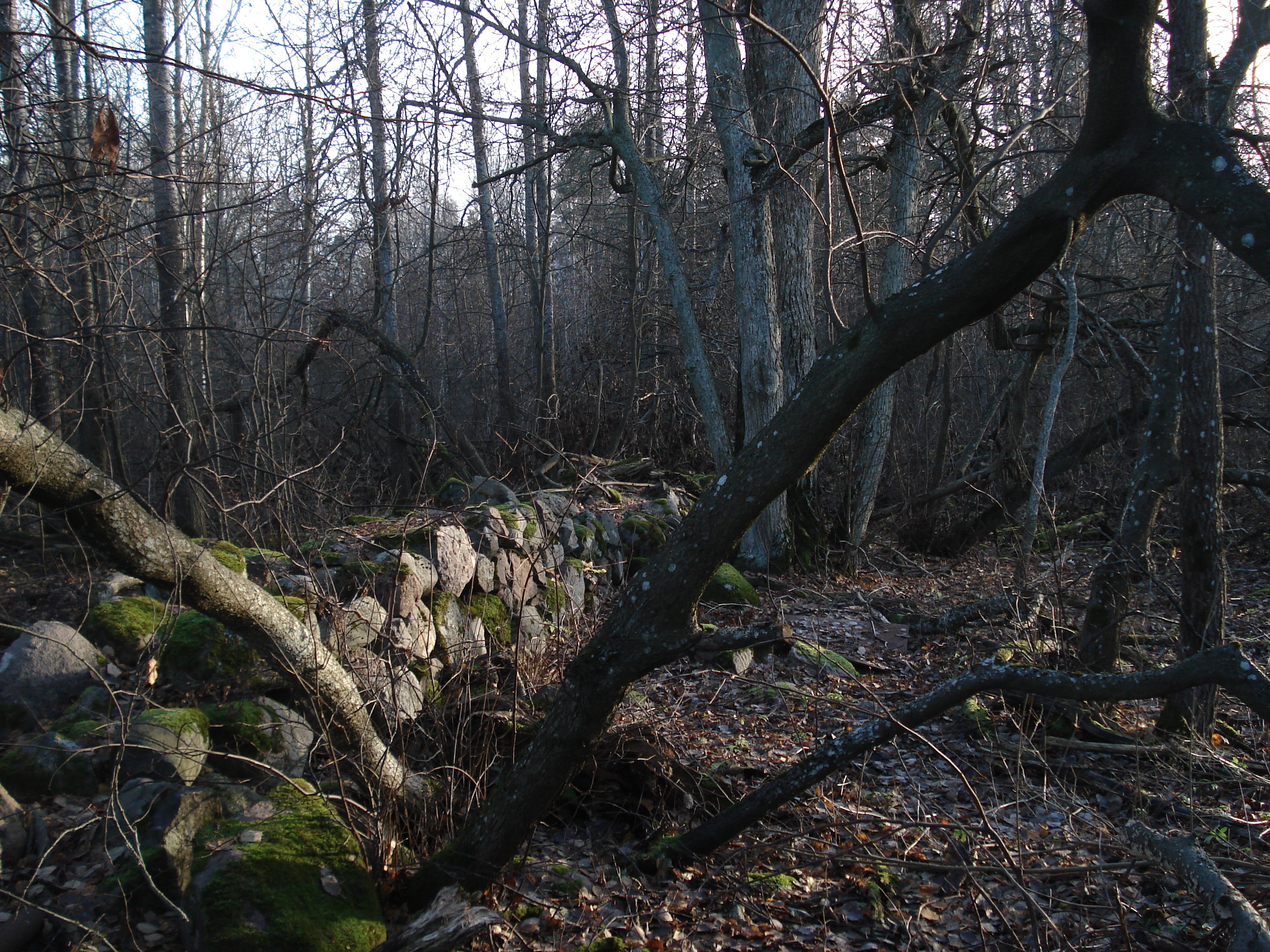 Kun kävelee meiltä ensin Isolle Omenalle ja siitä sitten Länsiväylän reunaa pitkin Hankoa kohti, alkaa vastaan tulla vesakkoa ja vähän isompaakin puuta kasvavia kivijalkoja ja kivimuureja. Lehtipuupainotteinen kasvillisuus tuo mieleen Keski-Euroopan, mikä täyttää sydämen nostalgialla.