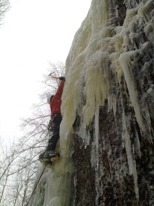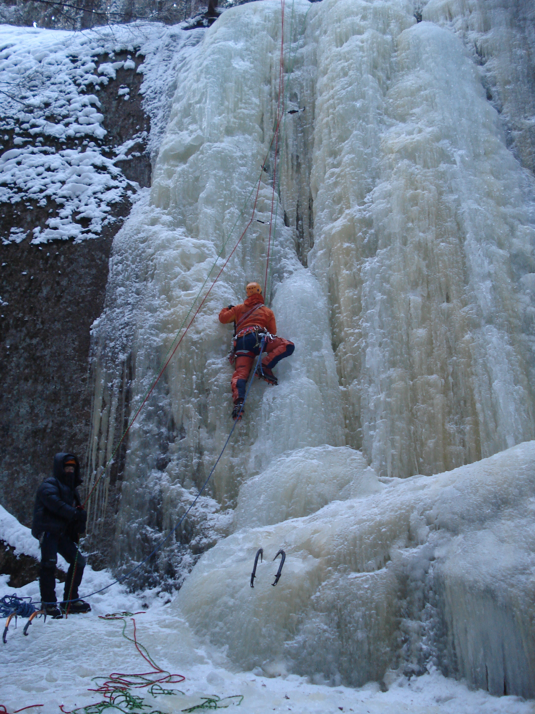 Automatka vie pari tuntia. Kävelymatka putouksen juurelle kestää tunnin, tiukkaa ylämäkeä haaroja myöten hangessa. Hiki virtaa ja puuskututtaa. Lähestymishaikki on välttämätön paha perille pääsemiseksi. Ei itsessään mielekästä oikeaa kiipeilemistä vaan raakaa työntekoa tavoitteen saavuttamiseksi. Ei hölkkäämiseen tai hiihtämiseen verrattavaa mukavaa liikuntaakaan.