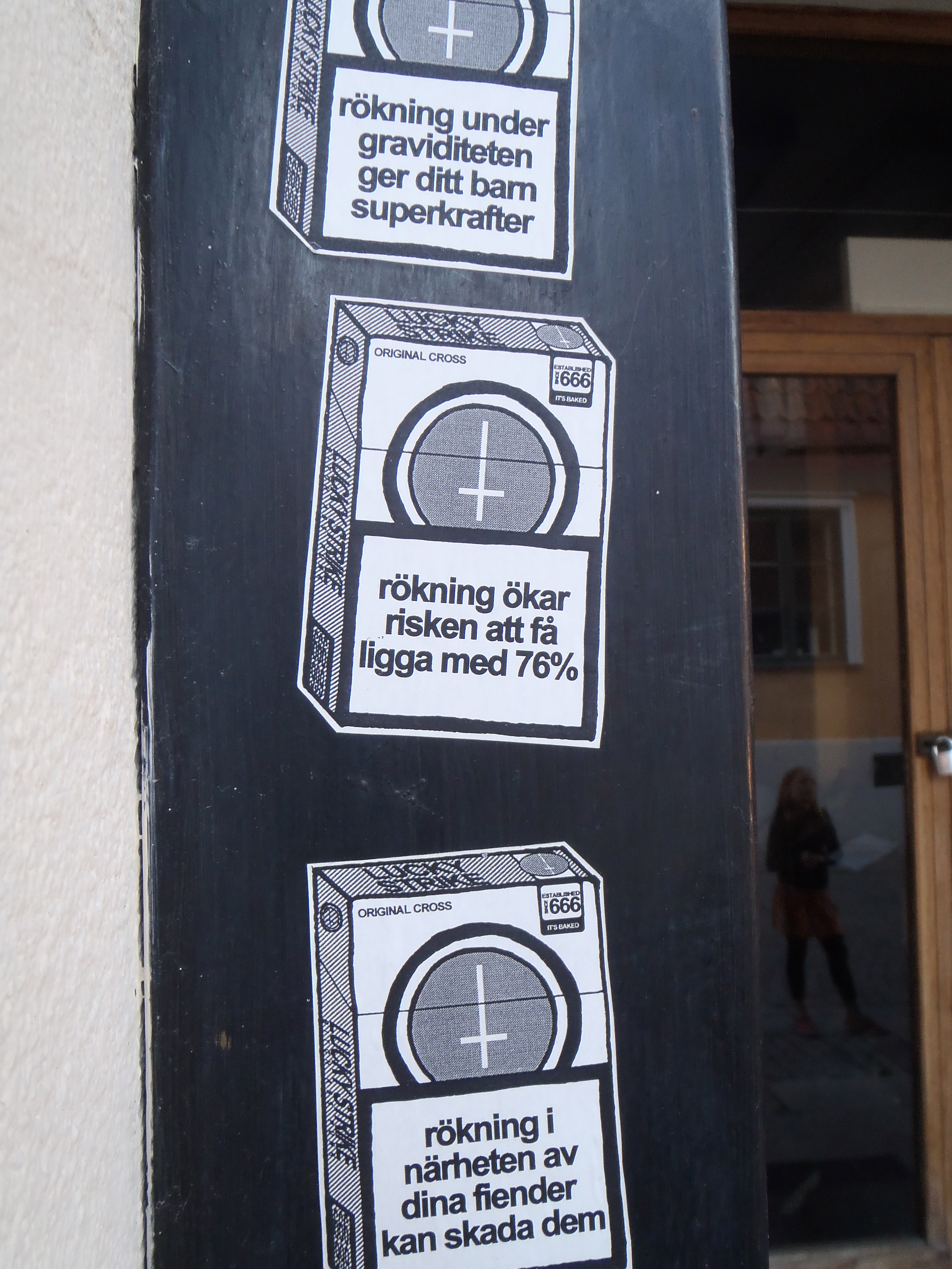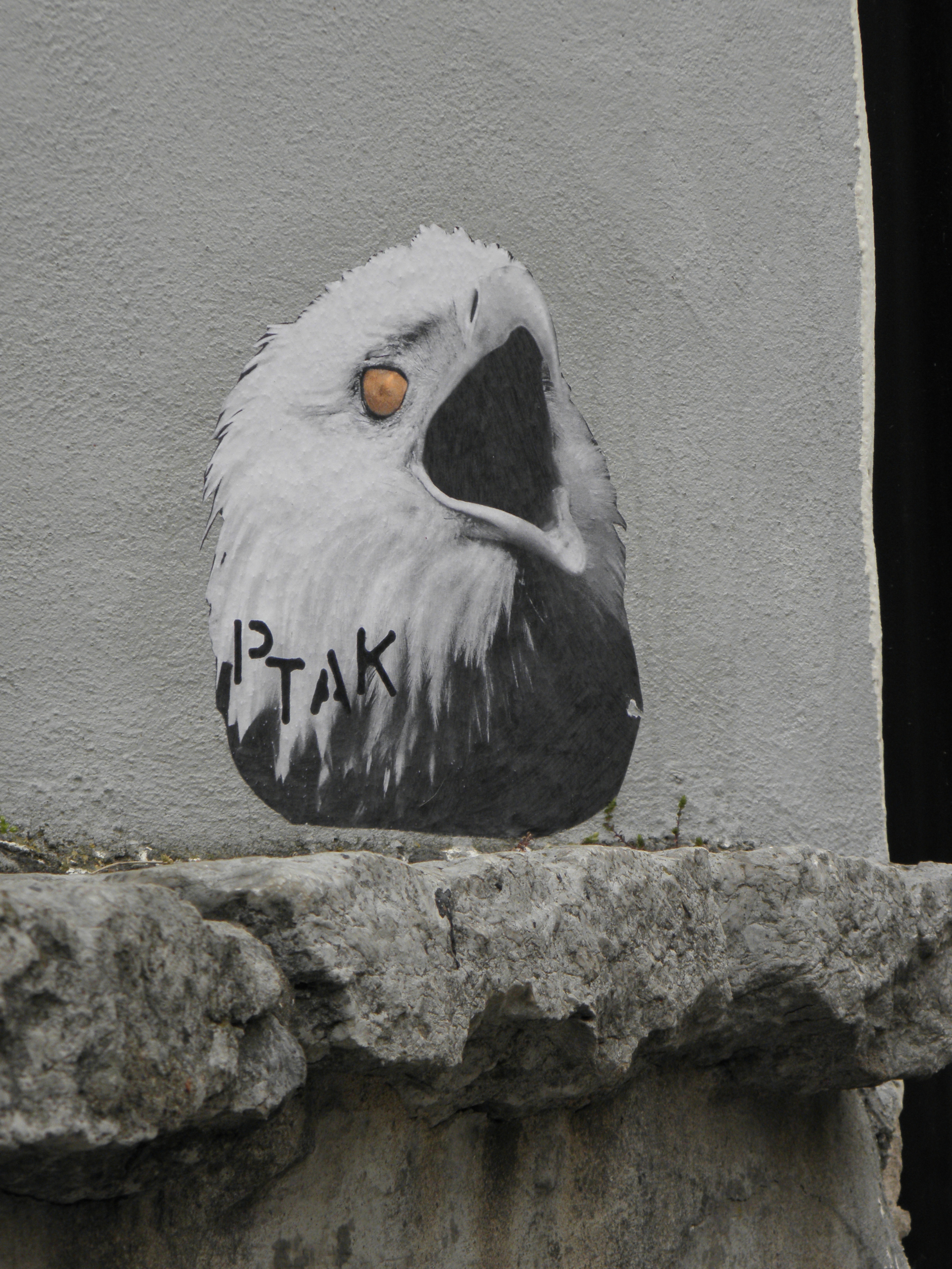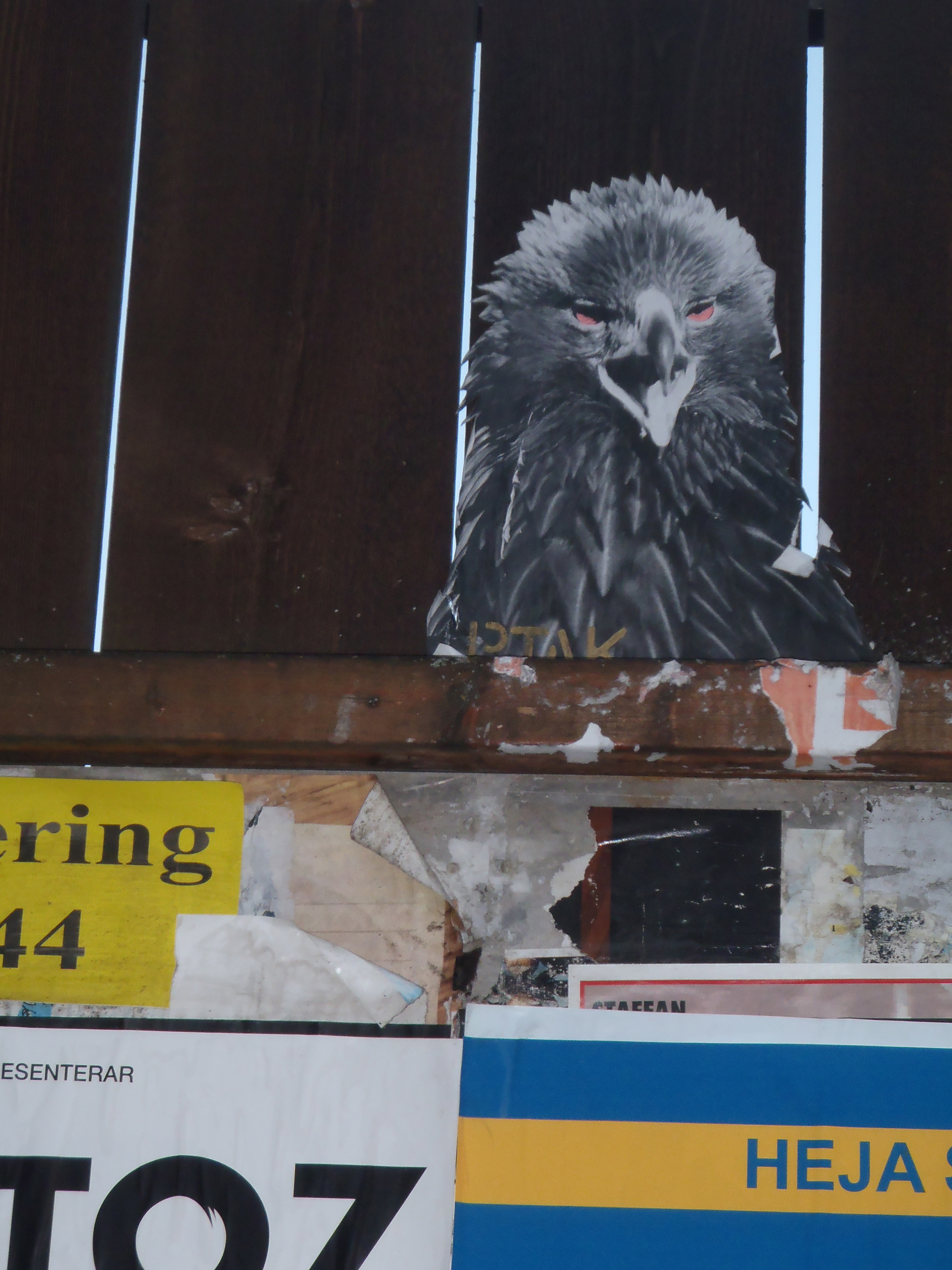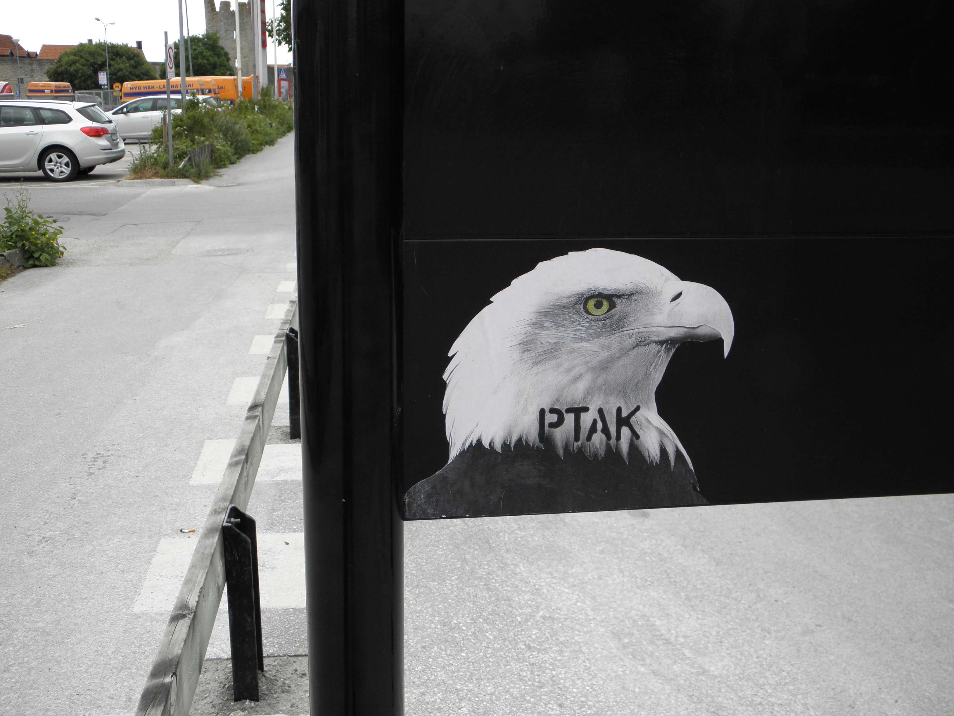 Eräs Visbyn tunnistettavimmista tekijöistä on petolintutarroja taiteileva PTAK. Tässä muutama otos: