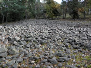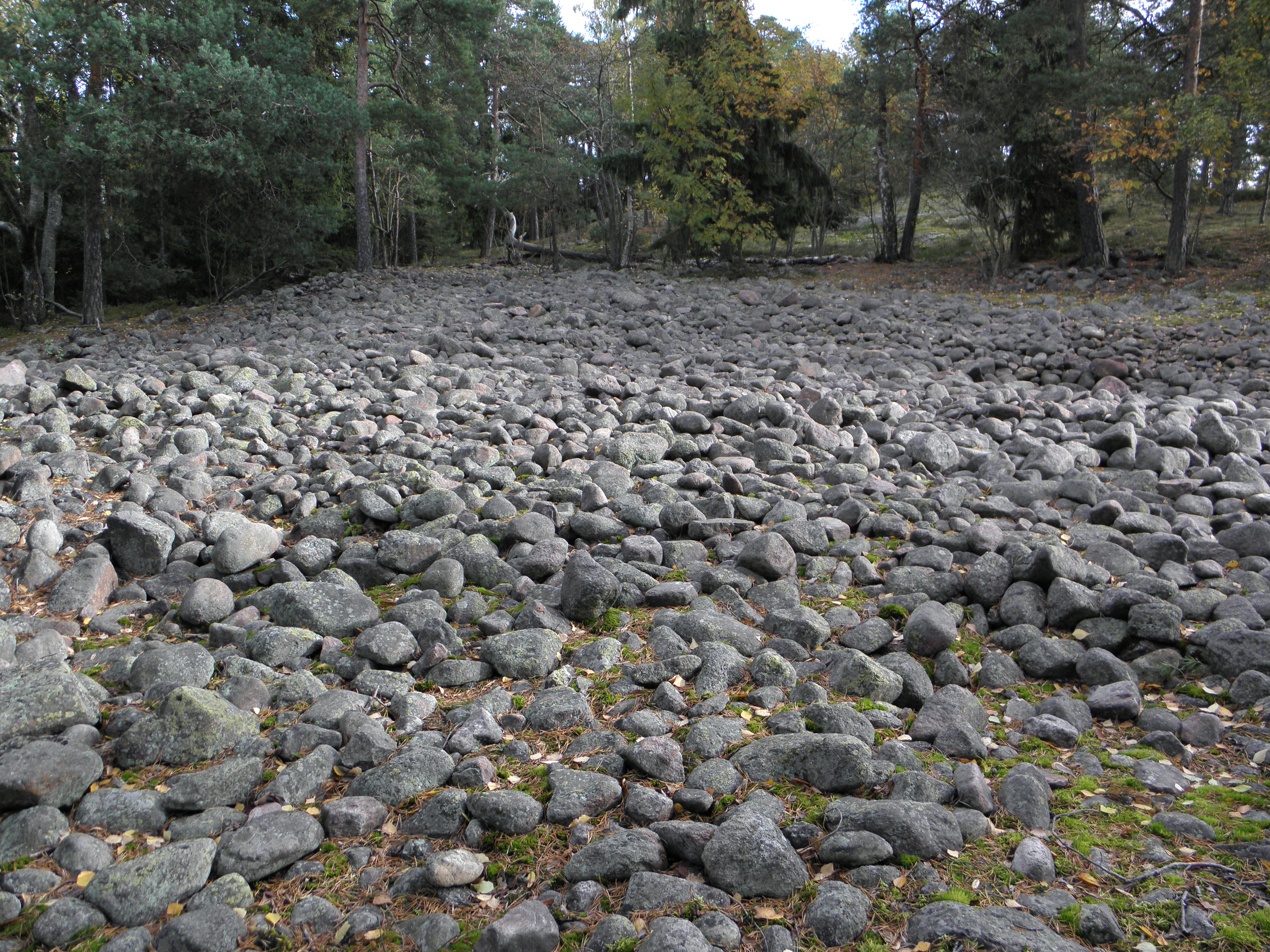 Kuva 1: Tiistilän pirunpelto. 12 kilometriä pitkä polkuni näyttävälle muinaisrannalle vei metsien, peltojen, kallioiden ja lampien kautta, kun taas paluumatka oli vain kahden kilometrin mittainen. Kohde löytyi oivallisen Kotinurkilta kallioille – Espoon luontokohteet -kirjan perusteella.